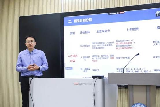 陈涛老师以“宣贯博士招生政策 服务国家重大需求”为题,围绕招生考试方式、招生计划分配、专项计划类型、科研育人费管理及招生纪律要求等内容,进行了系统解读,帮助与会教师全面把握政策要点。