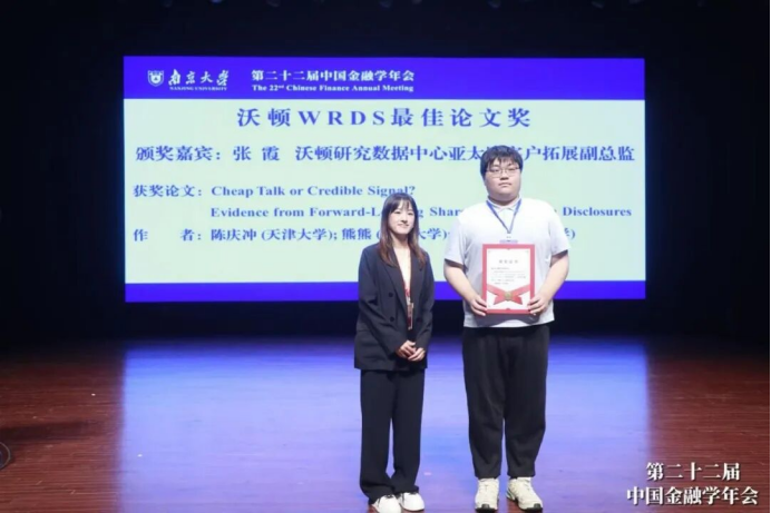 熊熊教授、博士生陈庆冲、张雨萌合作的论文“Cheap Talk or Credible Signal? Evidence from Forward-Looking Shareholder Return Disclosures”获第二十二届中国金融学年会“沃顿WRDS最佳论文奖”。同时,该论文于10月26日在芜湖汇报,被评选为第二十二届金融系统工程与风险管理年会高质量论文。该工作关注于我国上市公司分红频次低、金额少的问题,并讨论了证监会推出的“质量回报双提升”“提质增效重回报”引起的经济后果。
