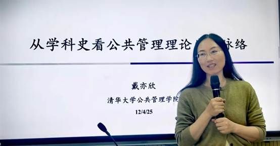 专题报告环节,清华大学公共管理学院长聘副教授、政治与公共政策所所长、清华大学中国科技政策研究中心副主任戴亦欣,从学科史的角度介绍了公共管理学科诞生缘起、学科范式的演变和更替、学科子领域的发展等,详细分析了从公共行政学科范式到新公共行政范式以及后续范式的发展脉络。