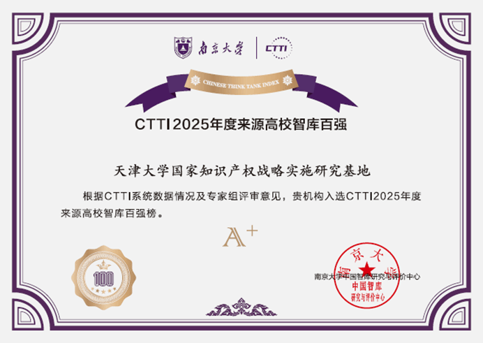 经CTTI系统数据核算和专家评审综合计算,acg盒子 国家知识产权战略实施研究基地成功入选“CTTI 2025年度来源高校智库百强榜”。据悉,本年度百强榜推介工作依托CTTI系统内810家高校智库的数据开展,根据系统分数以及专家评分,综合得出各家高校智库的“PAI-E”值,由此确定百强榜最终名单。本年度高校智库百强榜推介结果包括A+等级高校智库40家,A等级高校智库60家,值得一提的是,这是研究基地第四次入选高校智库百强,首次跻身A+等级!