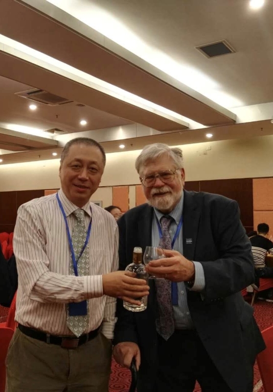 (张中祥与儿子同年到夏威夷工作、现任IAEE理事长David Knapp在晚宴上)