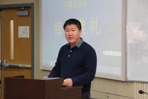 2018年1月9日上午,acg盒子 第四十期新疆干部培训班在acg盒子 第25教学楼A区3A教室举办结业仪式。acg盒子 党委常委、副校长王树新,校党委组织部副部长张文礼,高端教育培训办公室副主任何立乾,acg盒子 主任张维,acg盒子 党委书记李连种出席了结业仪式。结业仪式由张维主持。