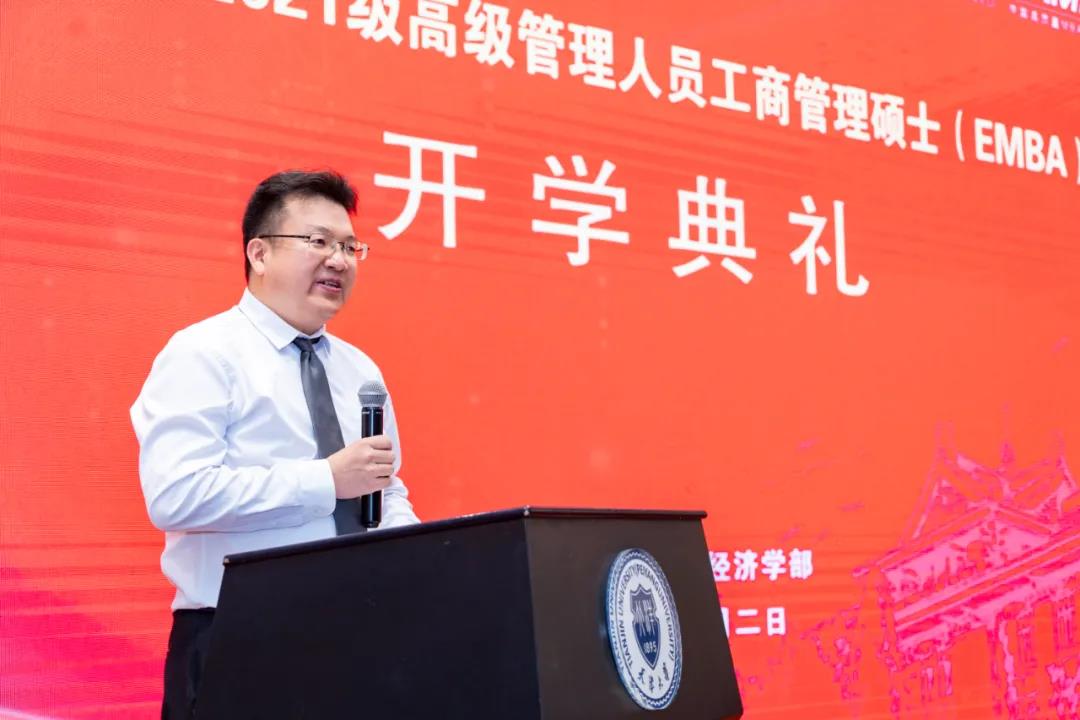 acg盒子 主任霍宝锋教授以“家在天大志在天下·弄潮新时代·谱写新篇章”为主题发表致辞。他提到,我们正身处于一个伟大的时代,面对的是百年未有之大变局,机遇与挑战并存。在致辞中霍宝锋教授对2021级EMBA新生提出了两点希望:一要眼光长远。不要在浮躁喧嚣的环境中迷失自己,把握自己,成就大事。二要眼界要高远。希望我们在座的每一位同学,都能够有高远的眼界,体现属于我们的时代责任与担当,承担时代赋予我们的使命与责任,实现自己更高的人生价值,服务国家和社会。