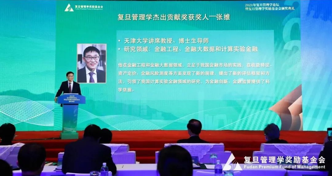 “复旦管理学杰出贡献奖”获奖人张维主要从事金融工程、金融大数据分析以及计算实验金融等领域的研究,是国内最早从事金融工程与金融风险管理领域教育和研究的学者之一。基于中国市场的特殊情景,他将期权定价理论与博弈理论相联系,提出了一套实物期权博弈应用的标准化流程和数理模型,简化了实物期权方法的应用难度,为实业界提供了一套更灵活的分析框架。在计算实验金融领域,他构建了一个大规模的、基于并行计算的,且基于中国金融市场特点的多智能体的计算实验金融模型,他领导的团队利用计算实验金融技术平台,先后承担了中金所、上交所的合作项目,所指导的毕业博士生利用这些技术在我国首个股指期货产品的开发中发挥了关键性的作用。张维积极投身教学实践,采用参与式和体验式教学,不断探索技术创新背景下的教育模式改革,培养学生的实践能力和创新能力;积极参与学部制改革,提出“以学生发展为中心、以学部使命为引导”的学部办学理念。