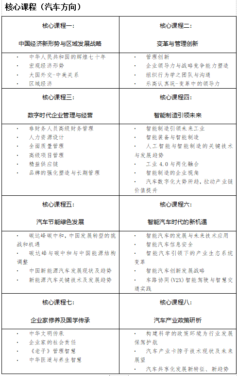 重全面,多维课程铸就广角提升—课程涵盖国家发展政策解读、智能制造案例、精益管理、人工智能、大数据、资本运营、国学智慧、营销管理、财务管理、人文素养、艺术鉴赏等各模块。课程以通过真实及仿真案例,使学员在整个课程中,通过头脑风暴,沙盘模拟,实地考察,小组讨论等形式,培养出能真正为企业解决问题的领导人才。