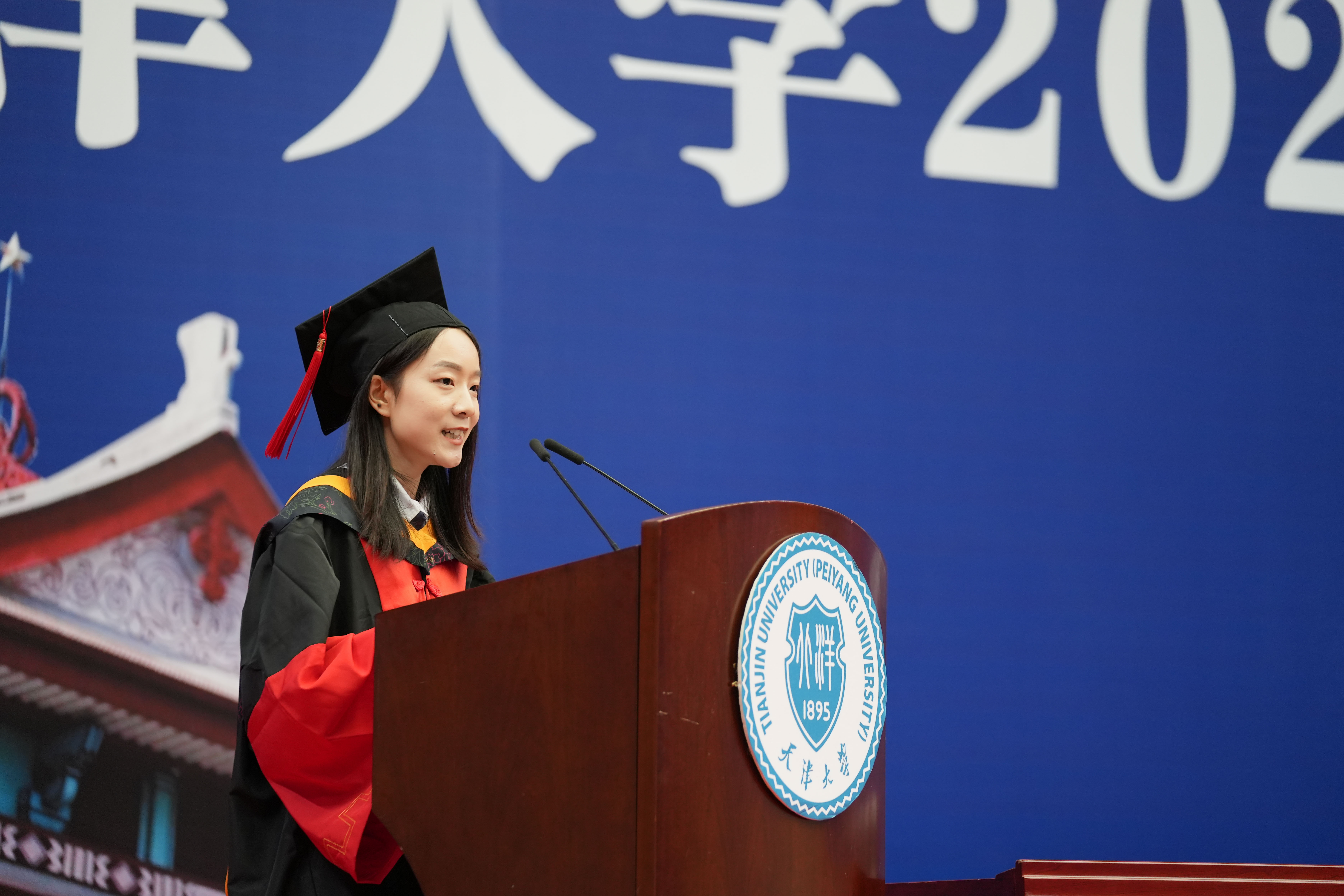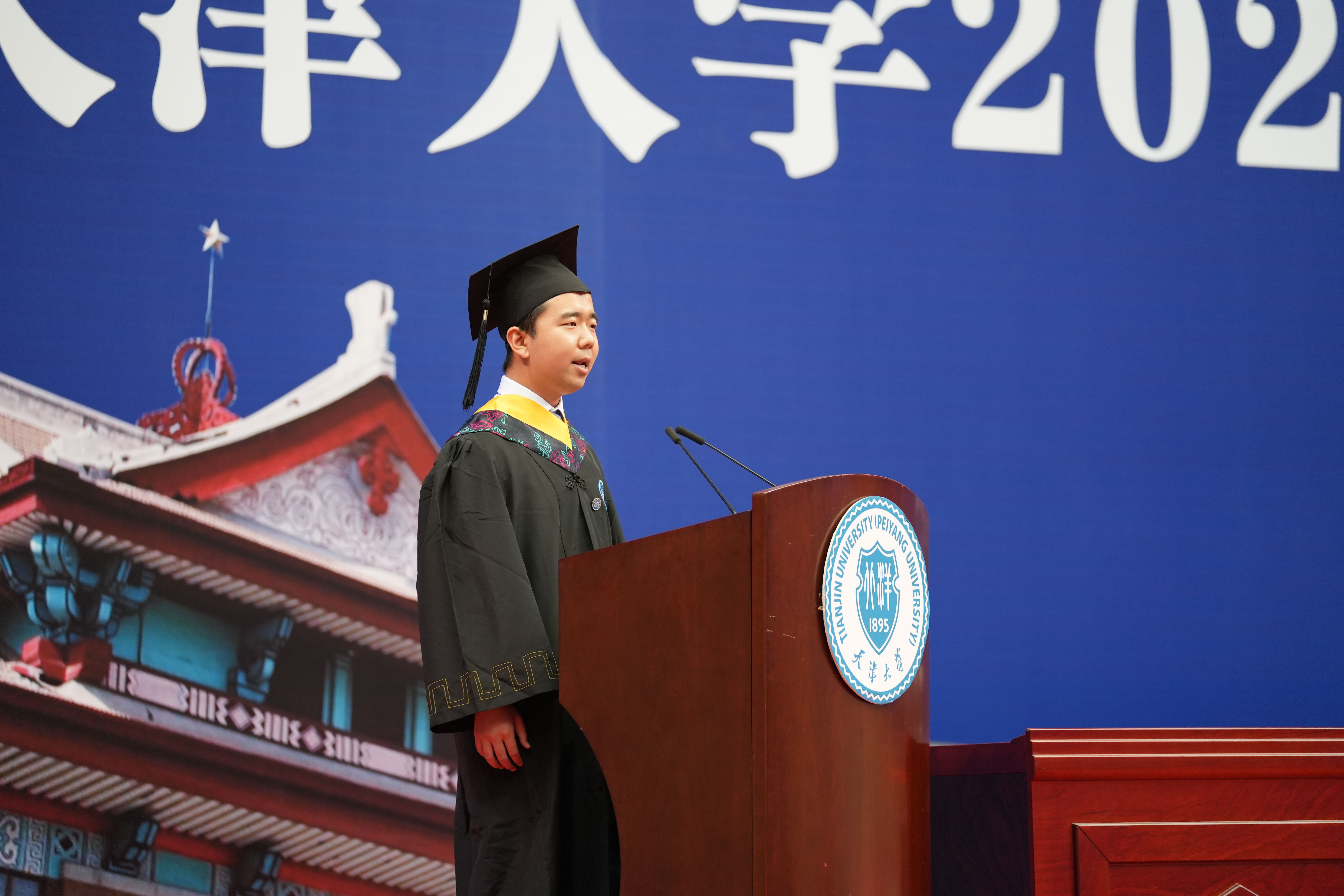 2018级工商管理专业本科生解乾宏作为毕业生代表发言,他回顾了自己四年间奋斗成长的大学生活与经历。他说,从四年前的胆怯稚嫩,到如今的敢想敢做,得益于学部老师们的教导和同学、学长学姐们的帮助。无论是学生工作,还是调研实践,他始终在行动中秉承“实事求是”的校训和“崇实事而求是,践商道以化成”的学部使命,在四年间300多小时的志愿服务中,彰显青年担当。毕业后的他将奔赴甘肃省宕昌县支教担任乡村教师,带着母校的殷切期望,将天大品格烙印在乡村振兴道路上,他说,“应将小我融入大我,在祖国和人民最需要的地方奉献青春力量”,acg盒子 给予的能量将支持他在新时代新征程中奋勇前进。