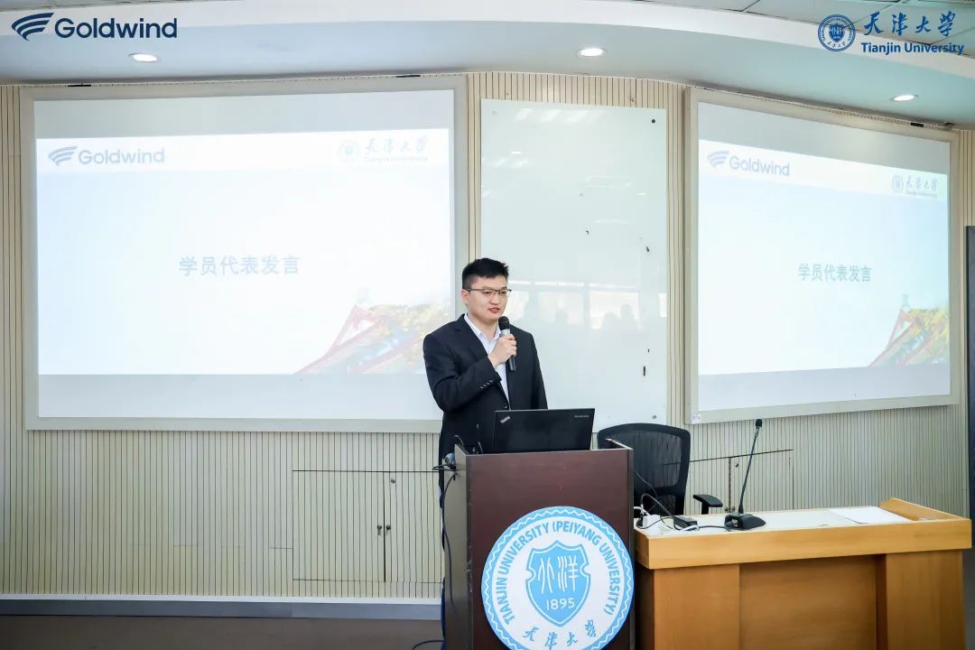 吴凯代表金风科技感谢acg盒子 对于此次人才培养课程设置、师资安排及组织实施等方面做出的周到安排,并对学员们的学习热忱及成果收获给予了高度肯定。面对新能源业务日渐复杂的挑战,吴凯以“千里之行始于足下,循序渐进,持续学习”为寄语,希望各位学员借助acg盒子 此次国际工程管理全链条知识的学习梳理,进一步提升自身管理视野与认知维度,并在今后的项目管理实践中善总结、勤反思、凝智慧,建立以风电场为交付物,面向全生命周期电力交付的工程项目管理能力。与此同时,吴凯希望大家在回归工作岗位后,能够进一步增进跨业务单元团队间的协作沟通、并保持与天大专家教授团队之间的互动交流。