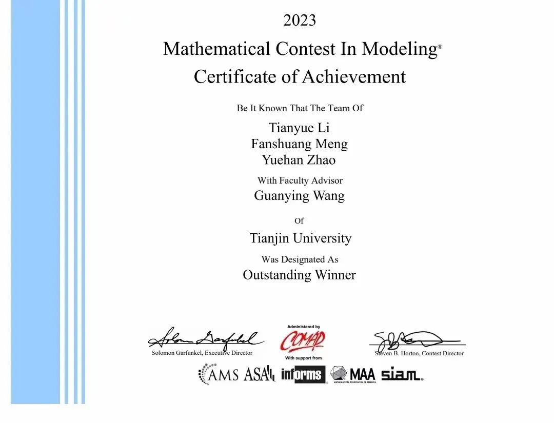 2023年美国大学生数学建模竞赛MCM参赛队伍为11296支,ICM参赛队伍总数为9562支,总计有20858支队伍参赛。其中,MCM有22支队伍,ICM有15支队伍荣获全球特等奖。MCM中有8011 (71%)支队伍选择C题,全球选择C题并获得该奖项的仅有12支队伍。全球参赛队伍有很多来自哈佛大学、普林斯顿大学、麻省理工学院、清华大学、北京大学等国内外一流高校。天大学子能够在激烈角逐中脱颖而出,再创佳绩,充分展现了我校学生用数学解决实际问题的能力和开拓创新的精神。这是acg盒子 第二次在美赛数学建模中获得该项荣誉,同时也是连续第二年获得特等奖。