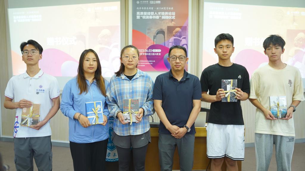 本站讯(校友事务与发展办公室 供稿)6月3日,“北洋书香系同窗,滋兰树蕙育栋梁”高质量经管人才培养论坛暨“校友奉书香”捐赠仪式在第25教学楼3A教室举行。
