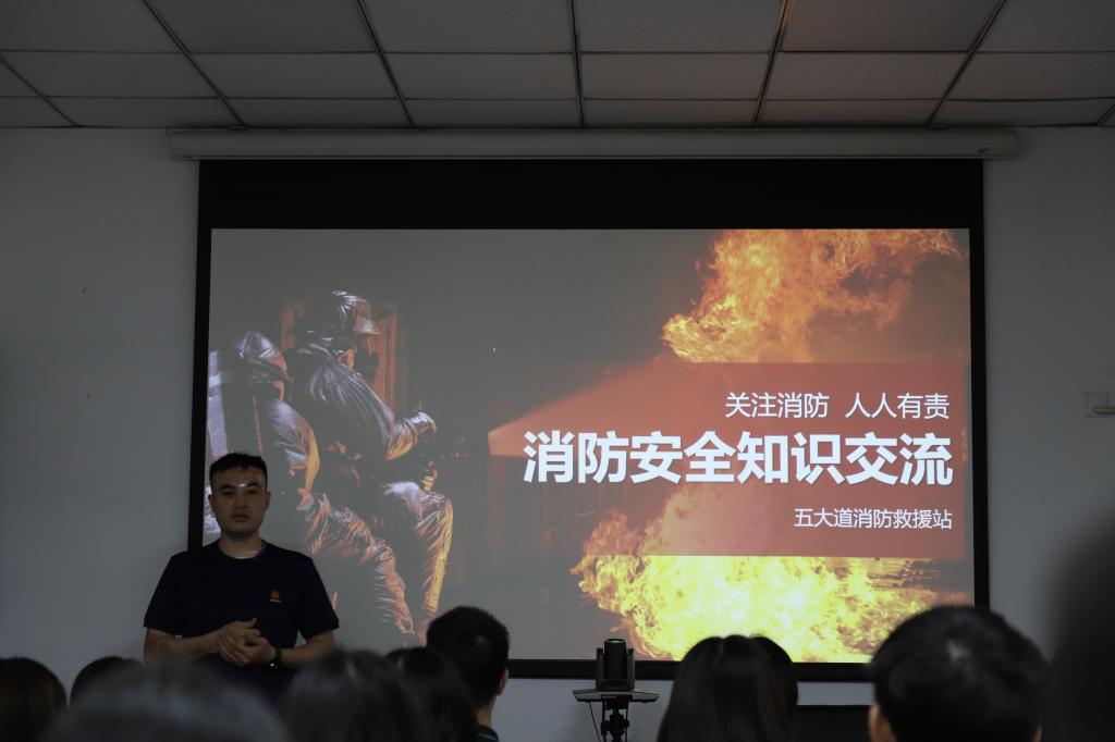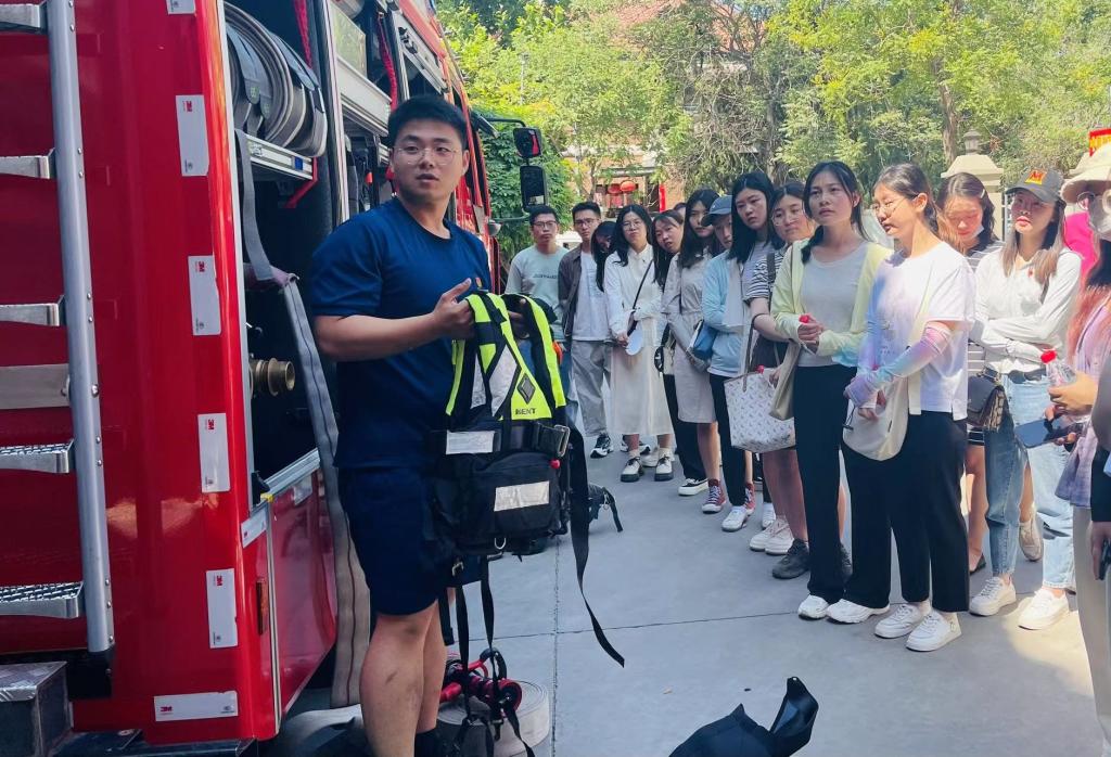 随后,师生参观了五大道消防站的警营文化墙、通信值班室、固定灭火设施、洗漱室、体练房等。消防救援人员通过视频放映、消防道具演示等方式,为师生们进行了消防安全教育,着重普及了在校园中容易出现的火灾隐患,讲解了火灾逃生的技巧,进一步增强了师生们的消防安全意识。
