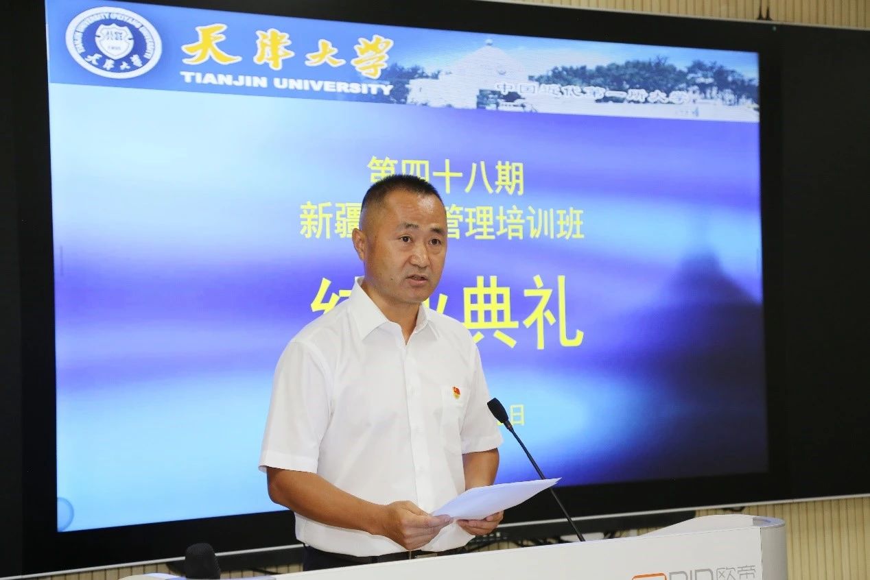 本站讯(通讯员:黎涓)7月12日下午,acg盒子 第48期新疆干部经济管理培训班(以下简称“新疆班”)结业仪式在卫津路校区举行。acg盒子 党委副书记雷鸣出席结业仪式并讲话。acg盒子 党委书记毛照昉、研究生院非学历继续教育办公室主任蔡建爽等出席。结业仪式由毛照昉主持。