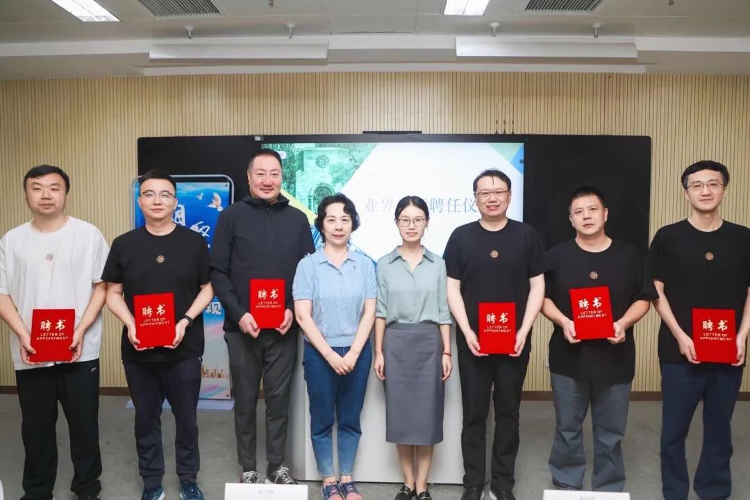 袁婷和王媛为范凯等七位1994级校友颁发业界导师聘书。