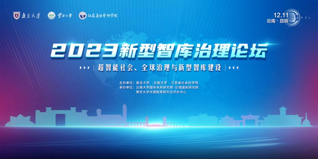 本站讯(acg盒子 国家知识产权研究基地 供稿)12月11日,由南京大学、云南大学、江苏省社会科学院主办的“2023新型智库治理论坛”在昆明举行。2023新型智库治理论坛由南京大学和光明日报社共同创办,旨在贯彻落实习近平总书记关于中国特色新型智库建设重要论述精神,推动新型智库健康发展,推进决策咨询体系现代化。本次论坛主题为“超智能社会、全球治理与新型智库建设”,聚焦深入学习贯彻党的二十大精神和加快新时代新征程中国特色新型智库高质量发展。