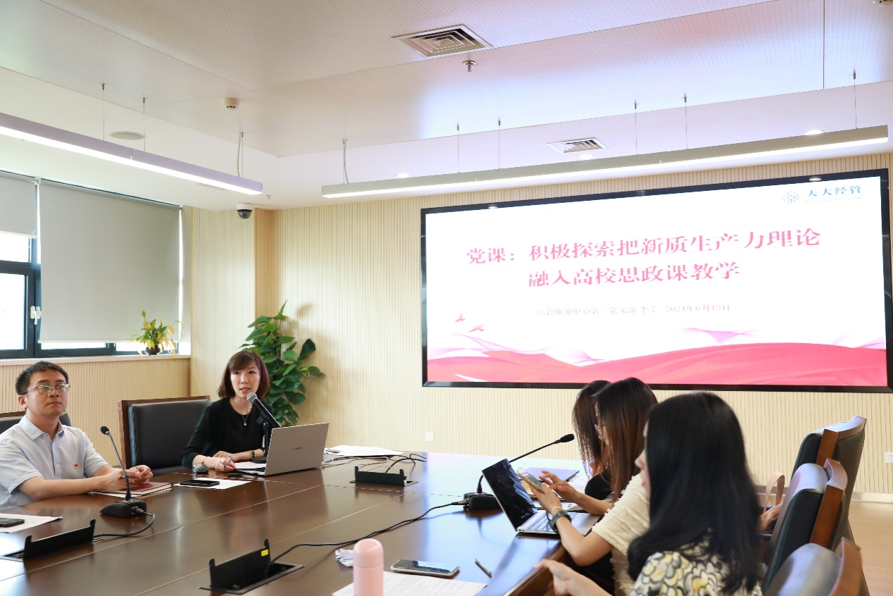 本站讯(通讯员:李莹 摄影:唐宇涵)为深入开展学习贯彻习近平新时代中国特色社会主义思想主题教育,深化全体党员对生产力发展规律的认识,领悟党对思政课建设的全面领导。综合服务中心第二党支部于6月13日开展《积极探索把新质生产力理论融入高校思政课教学》专题党课学习。