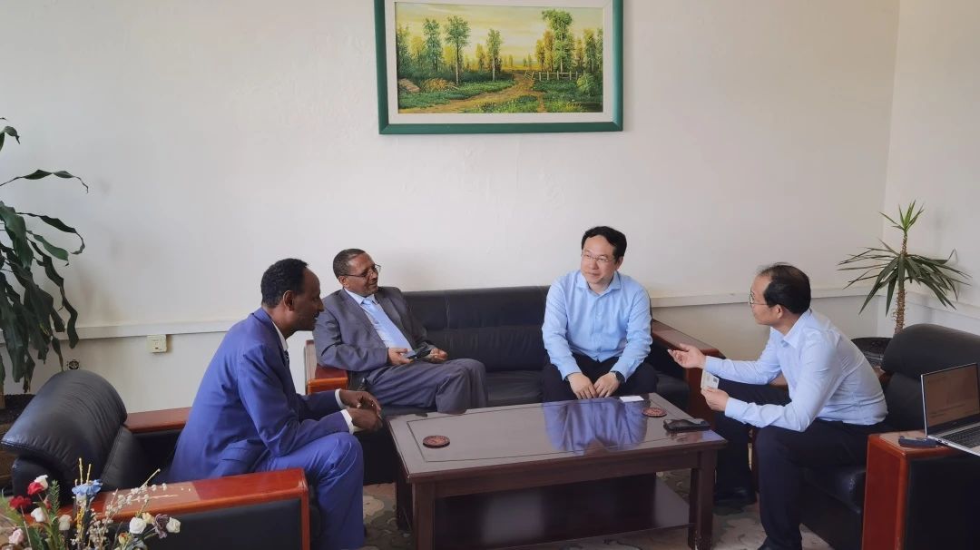 中交一公局集团东非区域中心党工委书记陶洪率队与天大代表团座谈交流。陶洪详细介绍了公司在东非区域特别是埃塞俄比亚的总体发展情况、经营状况以及房建群、埃塞机场项目群、旅游度假村群等重点在建项目情况,欢迎并感谢天大代表团为一带一路中资企业提供支撑服务。双方着重就公司属地化国际化进行深入交流探讨,初步在科研项目、员工培训、案例共建等方面达成初步合作意向,期待更广泛更深入的产学研合作。会谈后,天大代表团现场调研了亚的斯亚贝巴国家体育场在建项目。此外,天大代表团还前往中交一公局集团埃塞房建项目群合作伙伴亚的斯亚贝巴科技大学,参观中交埃塞亚的斯科技大学项目并与该校校长Dereje Engida教授就学科发展、教师互访、教育项目等事项开展合作意向交流研讨。