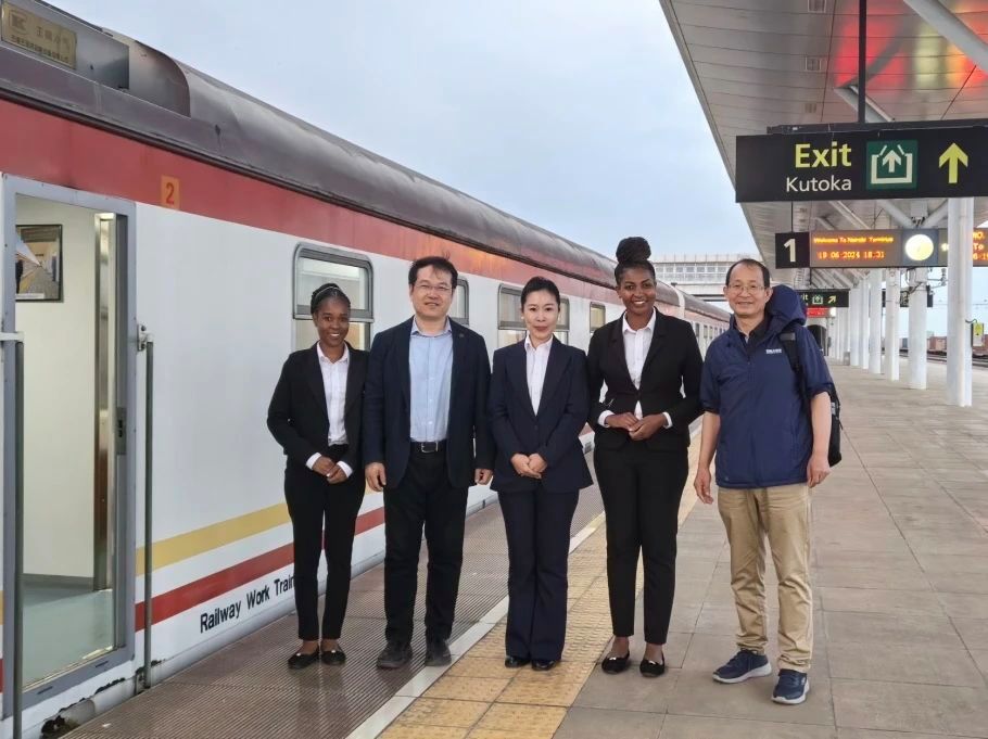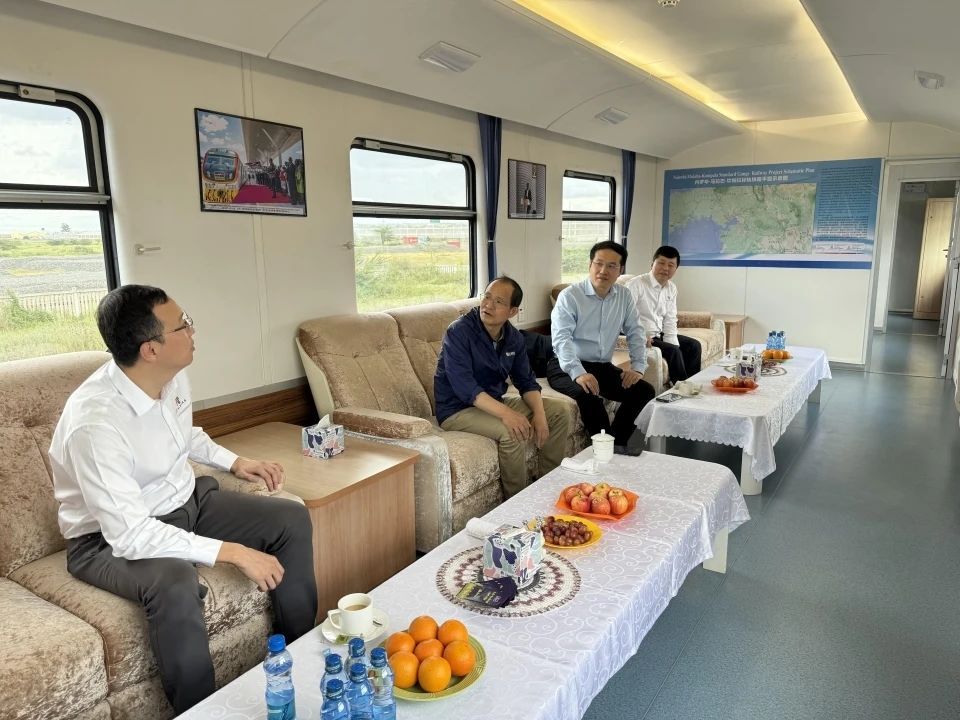 在中国路桥非洲之星铁路运营公司党总支书记尹成柱、总经理助理韩占涛陪同下,天大代表团赴蒙内铁路现场调研,乘坐内马铁路列车全线调研内罗毕站、麦马修站和奈瓦沙内陆集装箱港,了解车站客货运组织及作业情况。张水波表示,蒙内铁路作为“一带一路”倡议下中国铁路走出去的旗舰项目和优秀案例,其极具特色的客货运营、属地化、技能培训等宝贵经验应在学术和科研平台进一步传播和学习;毛照昉表示希望双方能够进一步加强校企合作,提炼升华蒙内铁路建设经验,持续助力更多中国企业参与“一带一路”发展建设。
