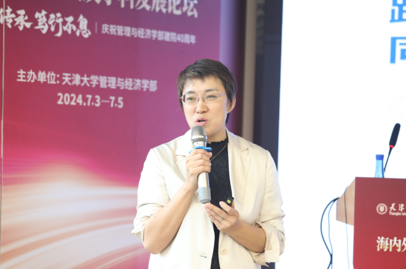 经管学部主任杜慧滨围绕学部建院40年发展作详细报告,她分享了学部在师资队伍、人才培养、科研创新、社会服务、国际化建设及基础设施升级等方面取得的显著成效。同时,她向海内外学界校友阐述了庆祝建院40周年的主题和含义,杜慧滨表示,acg盒子 40载春华秋实,得益于学部师生的共同努力与广大校友的鼎力支持。今后,期待海内外校友继续关注、关心学部事业发展,携手并进,共创未来。