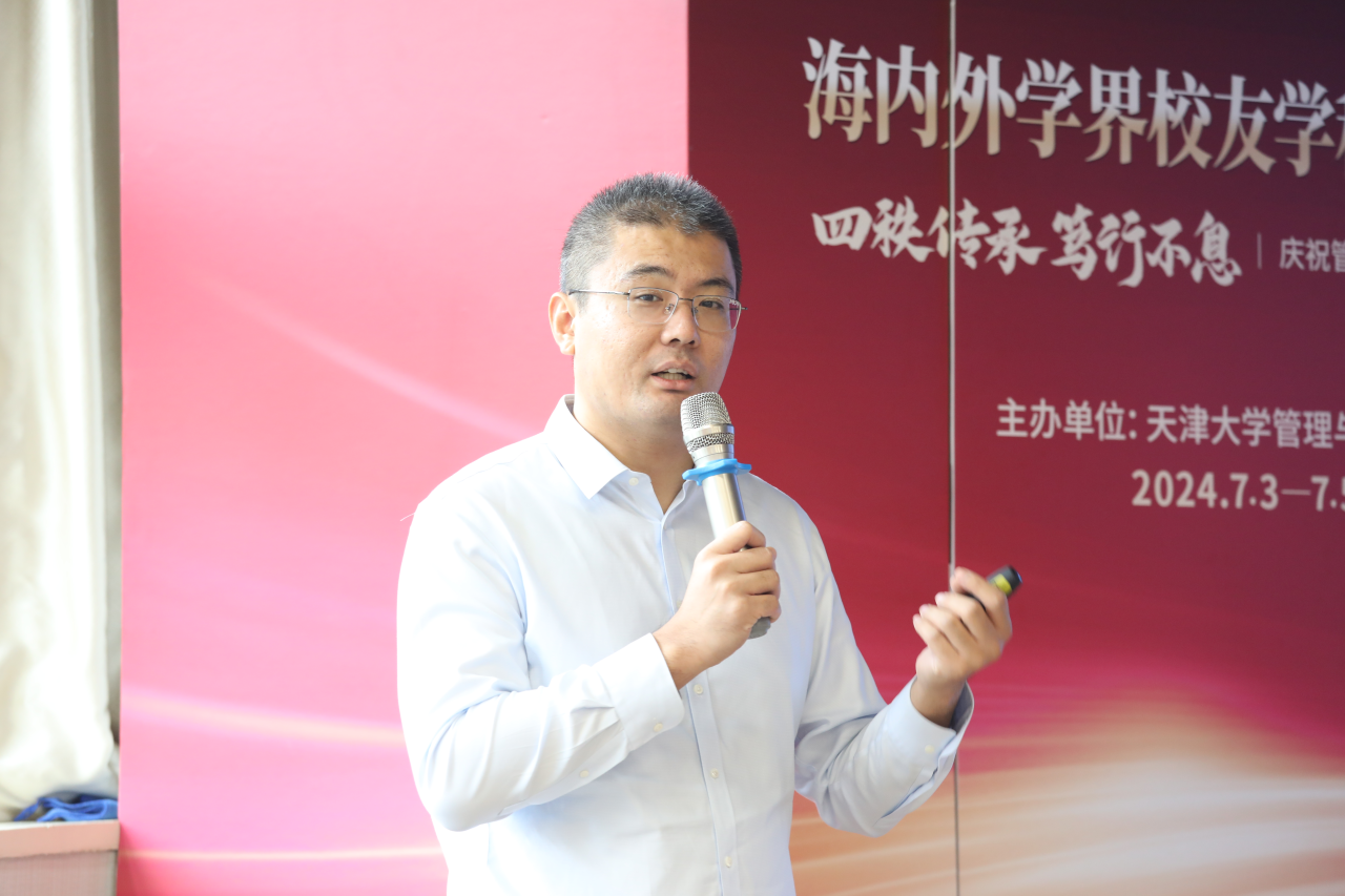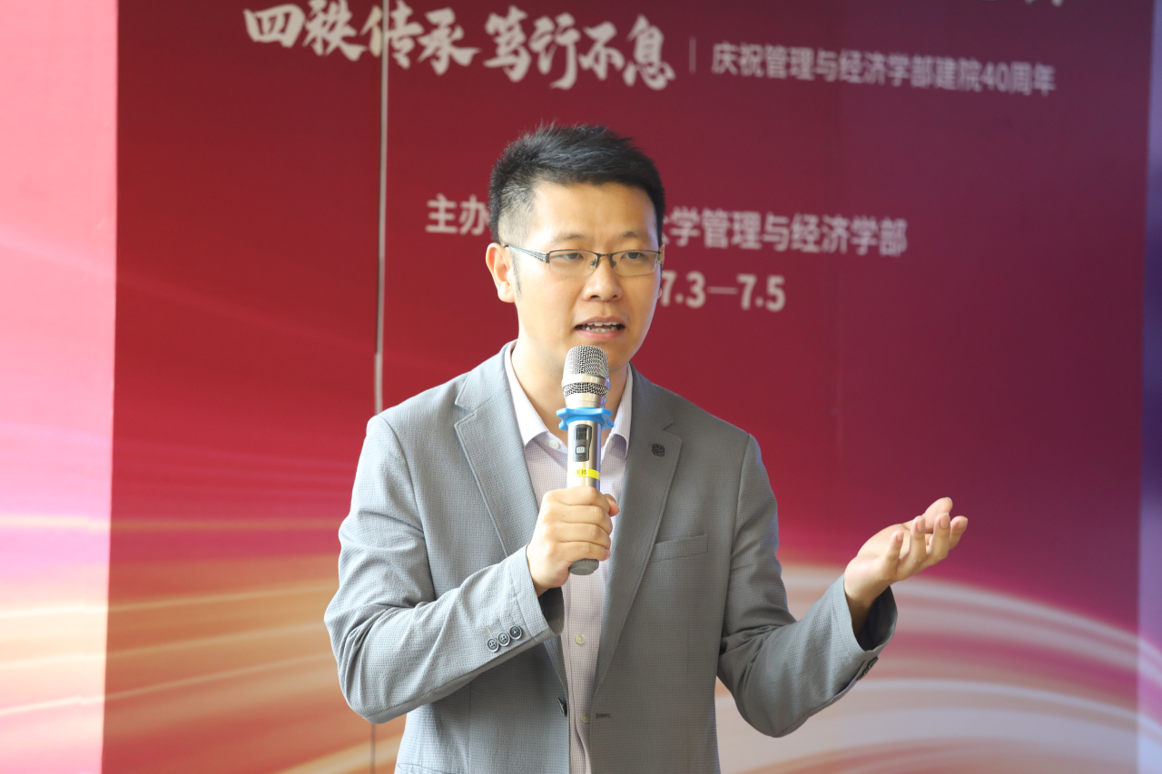 经管学部党委书记毛照昉在致辞中向到场的嘉宾们表示感谢,他提到,学部学科的建设与发展离不开海内外学界校友的辛勤付出与不懈努力。毛照昉向在座校友简要介绍了学部发展现状,并希望能够更多汇聚校友智慧,共同探讨学科发展的新思路、新方向,为学部未来发展注入力量。