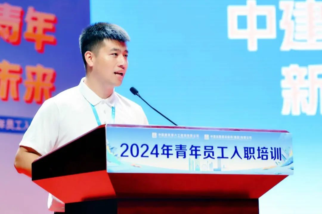 随后,中建六局、中建丝路优秀青年员工代表分享成长心得;全体新员工进行集体入职宣誓;王瑾为2024年青年员工入职培训开营授旗。