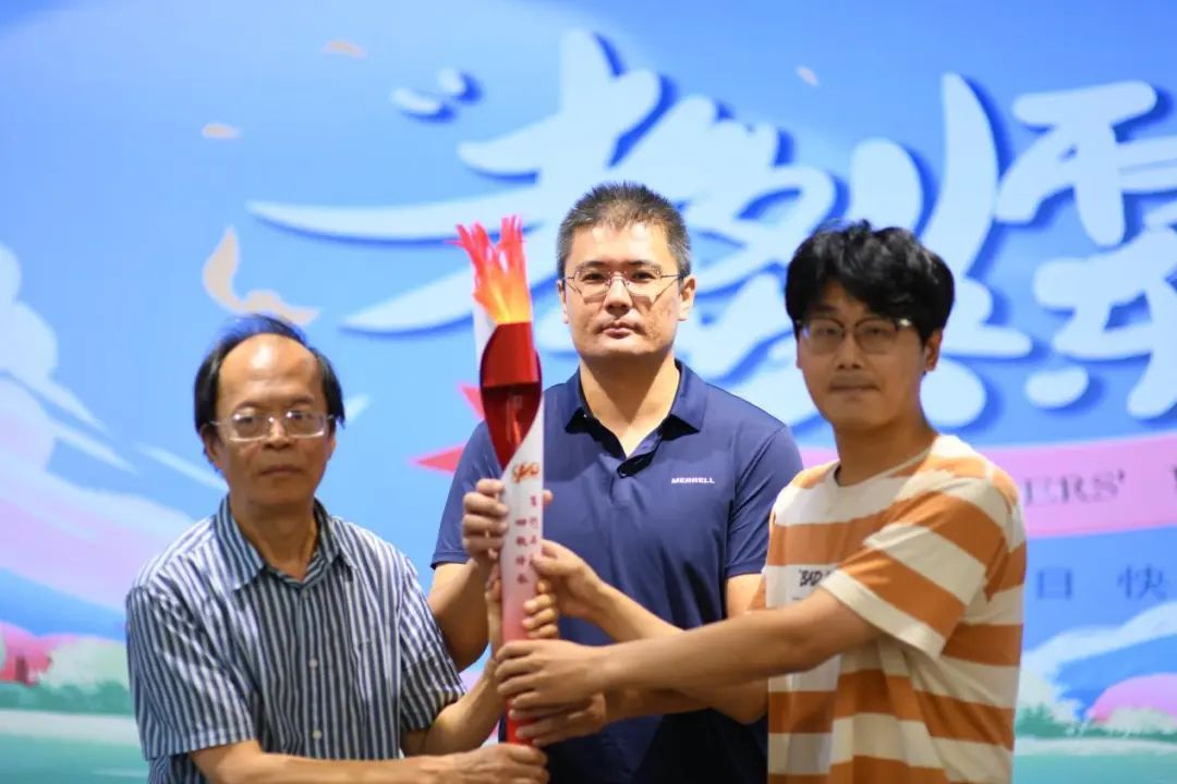 在传承仪式中,老教师代表将象征荣耀与责任的火炬传递到青年教师代表手中,这不仅仅是红艳艳的火炬,更是他们对教育事业无悔付出的见证和对后辈寄予厚望的象征。