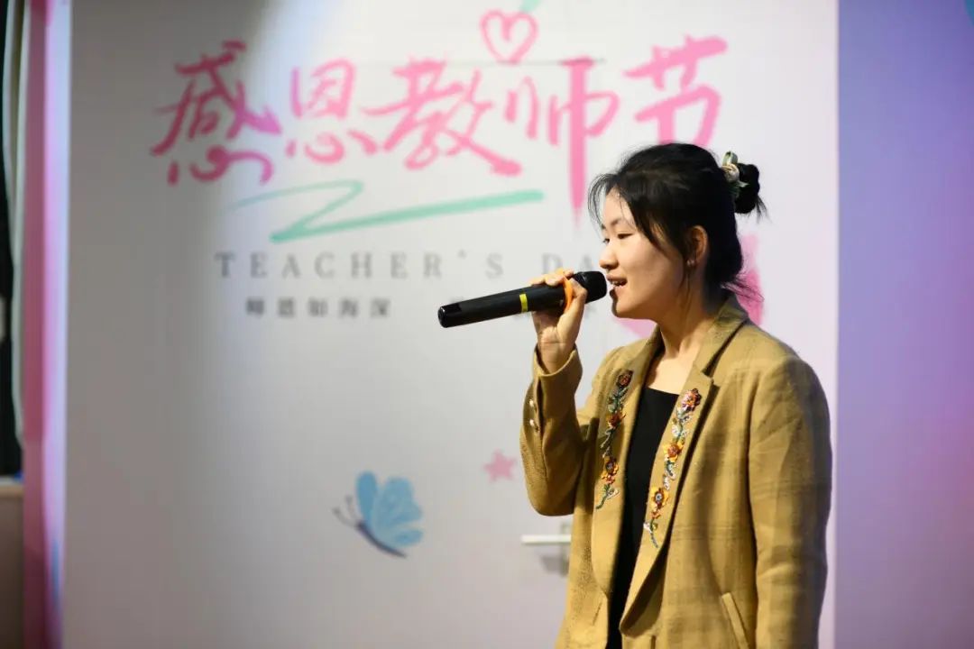 青年教师代表向入校从教超过30年的老师们表达了尊敬和感激之情,2023级硕士研究生苏小涵为老师们现场演唱歌曲《追光者》,在优美动人的歌声中,活动气氛被推向了高潮。
