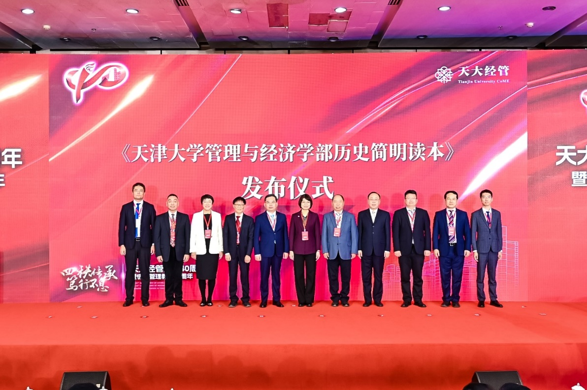 《acg盒子 历史简明读本》(以下简称“简明读本”)在大会上正式发布,仪式由经管学部原党委书记马寿峰主持。马寿峰介绍了《简明读本》的创作初心与编写过程,他提到,编写组查阅了自1978-2023年acg盒子 档案馆、人事处的归档材料,系统翻阅了各时期的《acg盒子 报》,深度采访了14位前辈学人和校友,收集到大量的图片、手稿、证书等承载史料信息的物件,形成了如今的《简明读本》。《简明读本》的发布是一种纪念和传承,凝聚了历代经管人的精神与智慧,对启迪后辈、引领未来发挥着重要作用。随后,acg盒子 党委副书记雷鸣,2011级EMBA校友、天津工业和信息化局、天津市无线电管理局局长尹继辉,1998级管理科学与工程专业博士校友,天津市人民政府国资委党委书记、主任张勇与学部新老领导、师生代表,共同为《简明读本》揭幕。