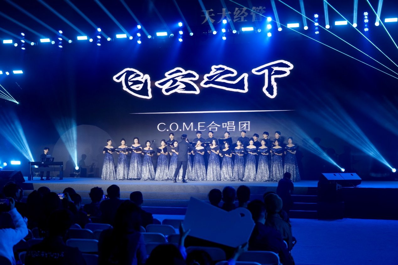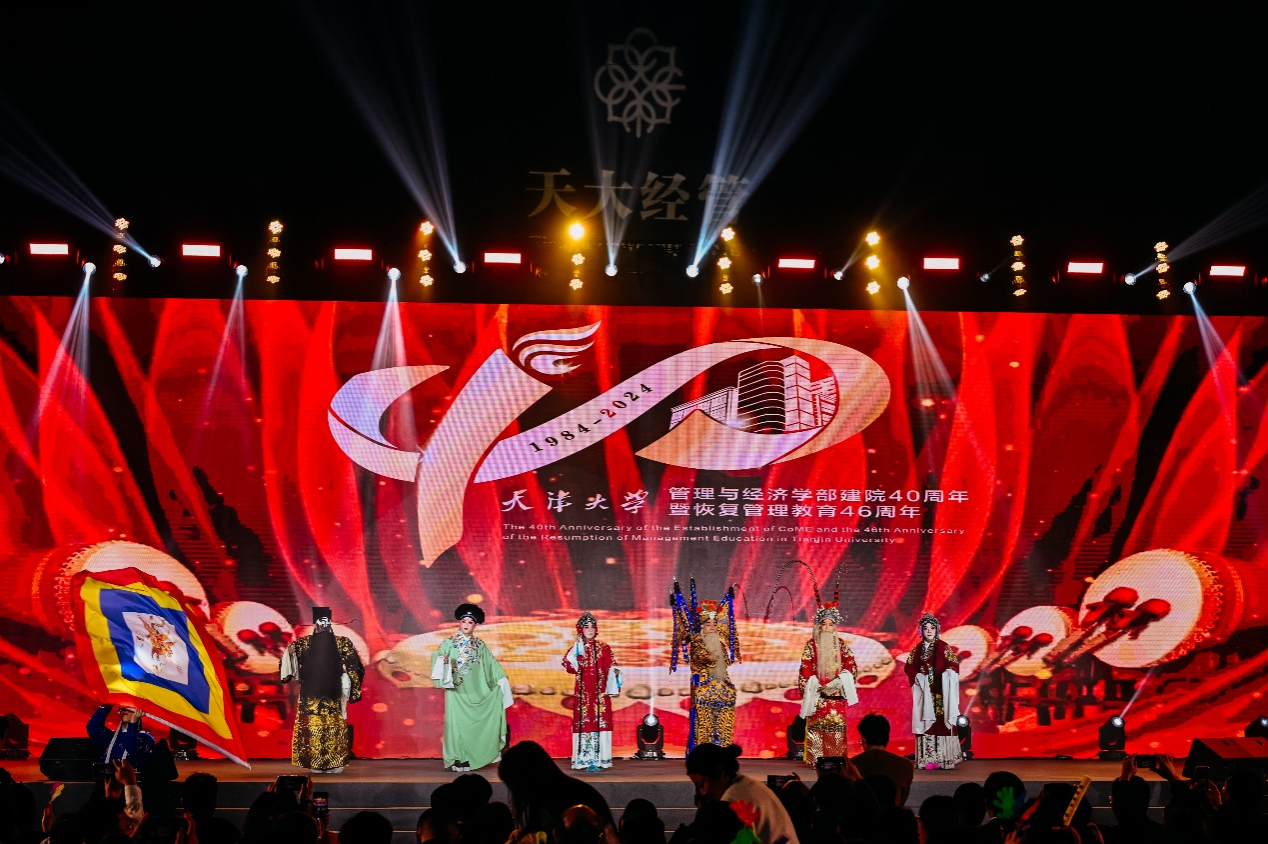 主题晚会由栉风沐雨,薪火永续;四秩传承,笃行不息;携手共进,华章待启三个篇章组成,于acg盒子 卫津路校区体育馆举办。这场由天津市社会团体、曲艺名家、经管学部师生、校友共同呈现的晚会,包含了戏曲、曲艺、歌曲、舞蹈、朗诵等多个节目,这不仅是一场精彩绝伦的视听盛宴,更是经管人精神风貌与深厚情怀的生动诠释。