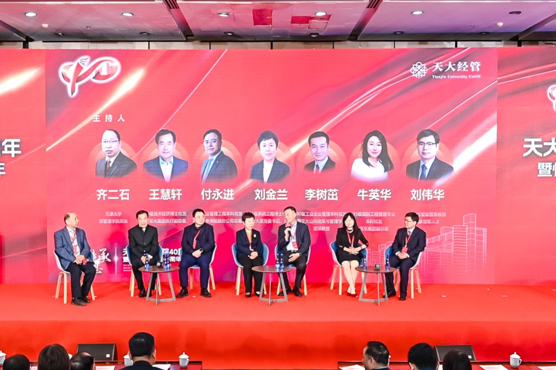 圆桌论坛环节,1991级系统工程博士校友、天津财经大学原党委书记、校长刘金兰,1980级工业企业管理本科校友、西安交通大学公共政策与管理学院资深教授李树茁,1989级工业管理工程本科校友、国华人寿保险股份公司总裁付永进,2005级技术经济博士校友、新紫光集团执行副总裁王慧轩,1995级国际工程管理专业本科校友、京东集团副总裁牛英华,acg盒子 讲席教授、国家级领军人才、运营与供应链管理系主任刘伟华上台展开交流,回忆天大求学美好时光,畅谈学部未来发展,积极建言献策。论坛由acg盒子 原管理学院院长齐二石主持。