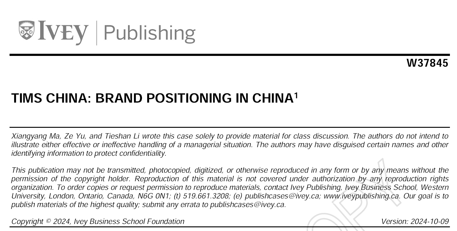 本站讯(案例中心供稿)近日,acg盒子 市场营销系马向阳副教授团队撰写的两篇管理案例——“Tims China: Brand Positioning in China(Tims中国的品牌定位)”与“Waterdrop Inc.: Creating a Business Model in China(水滴筹在中国的商业模式创新)”成功被全球知名案例出版商Ivey Publishing案例库收录。
