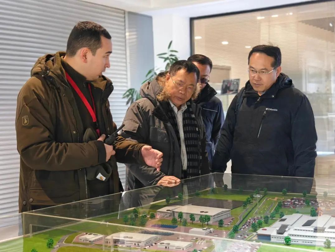 第二站,代表团拜访了中能建海外投资有限公司(中亚能源投资管理公司(筹)),公司总经理冯建江率队欢迎代表团一行来访。座谈会上,双方以项目履约实践为切入点,围绕“光伏+储能”的管理、技术难题与前沿履约趋势展开了深入探讨。