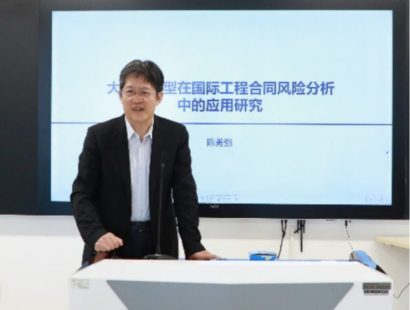 随后,陈勇强教授以“大语言模型在国际工程合同风险分析中的应用研究”为题,分享了其在国际工程合同领域的深入研究。他从合同文本的自然语言特性出发,阐述了利用大语言模型进行风险分析的理论基础与实践方法。陈勇强教授还介绍了其团队在数据收集、模型训练与应用推广方面的不懈努力,以及与国际权威组织合作的成果,展现了大语言模型在工程合同风险分析中的巨大潜力与广阔前景。