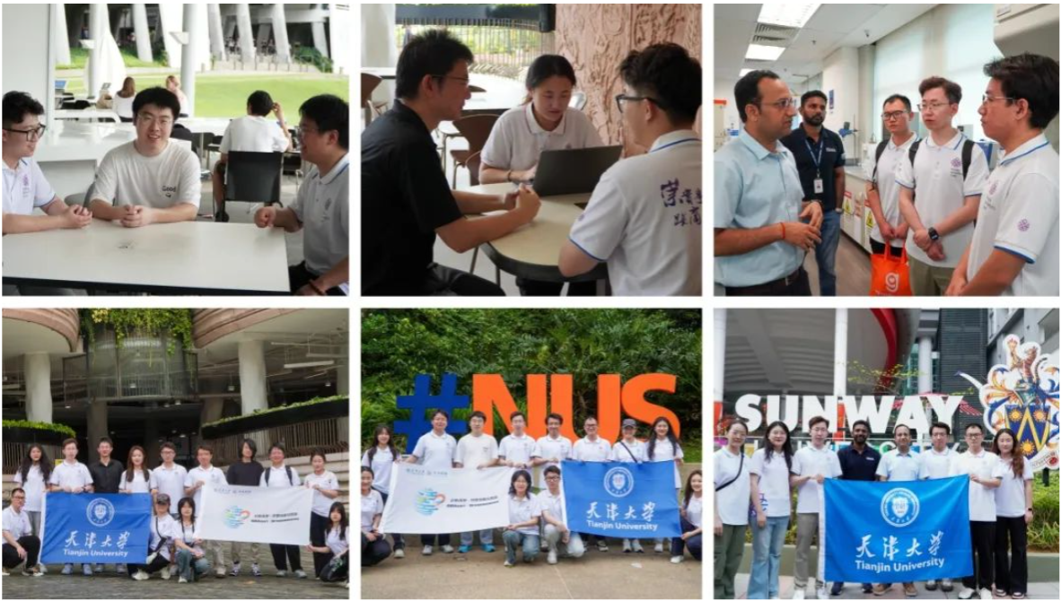 实践队走进南洋理工大学(左)、新加坡国立大学(中)和双威大学(右)