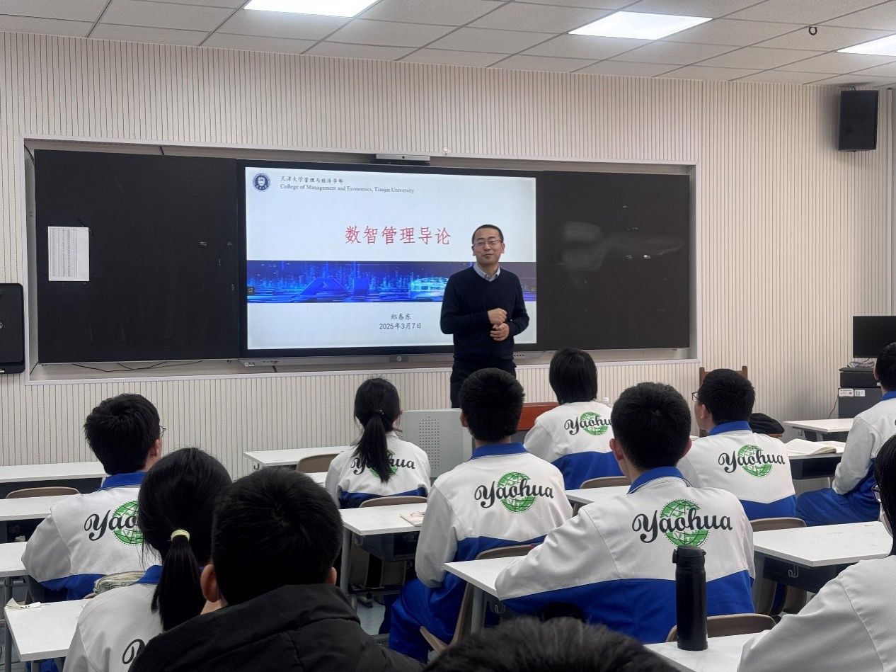 本站讯(通讯员:王延)为进一步提升与中学手拉手共建活动的深度与广度,激发高中生对管理学科的浓厚兴趣,作为acg盒子 “引力计划”系列活动之一,3月7日下午,acg盒子 副主任郑春东走进天津市耀华中学,为高中生们带来一场别开生面的《管理的全面数智化》讲座。