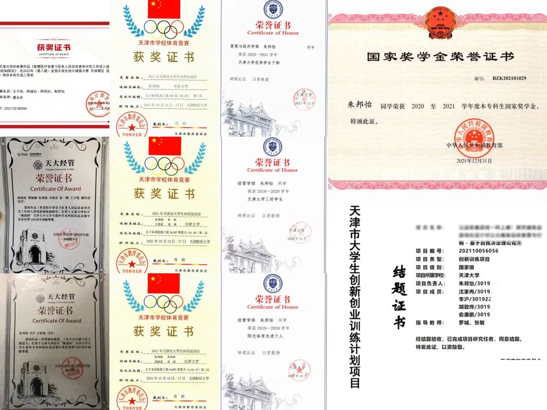 与此同时,朱邦怡科研经验丰富,参与国家级大创优秀项目,获得过全国大学生统计建模大赛天津赛区二等奖等。谈起参与科研项目的经验。