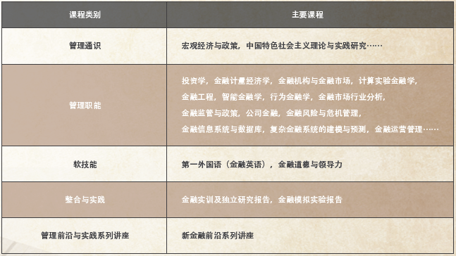 培养具备高度国际化视野和良好道德素养,充分了解金融理论和实务前沿新趋势,系统掌握后现代金融知识和技术工具,具有较强解决金融实际问题能力的高级金融复合型人才。具体培养目标细分为以下五个方面:
