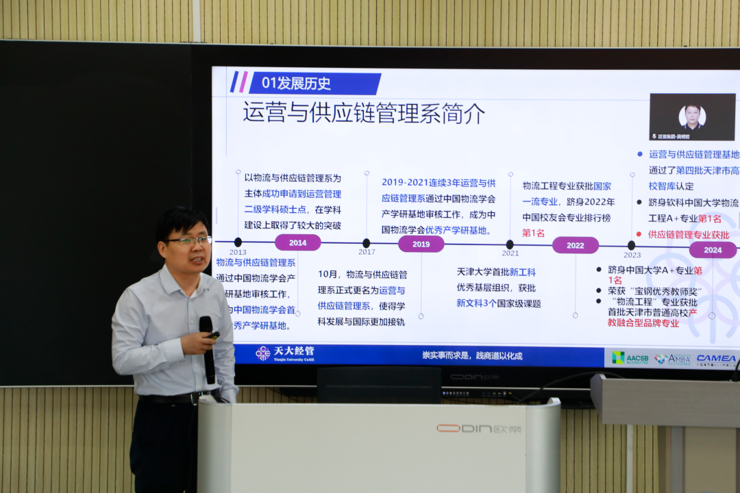 刘伟华系统阐述专业建设成果与规划,他提到,供应链管理专业依托近五年承担10余项国家级科研项目、发表300余篇核心期刊论文及出版15部教材专著的师资团队基础,专业持续深化“教研+实践”双轮驱动——通过设立奖学金、起草行业标准、发布政策智库报告等社会服务,联动校友会资源开展学术交流与企业调研,同步推进发展基金募集及国际专家合作。未来将锚定“建设高水平研究平台”“重塑本科生培养方案”等目标,以引进高层次人才、打造数字化前沿课程、筹办国际研讨会为关键路径,强化校企合作与品牌影响力,完善激励与人才机制,践行“以优秀的人培养更优秀的人”核心战略,推动学科建设与产业需求深度适配。