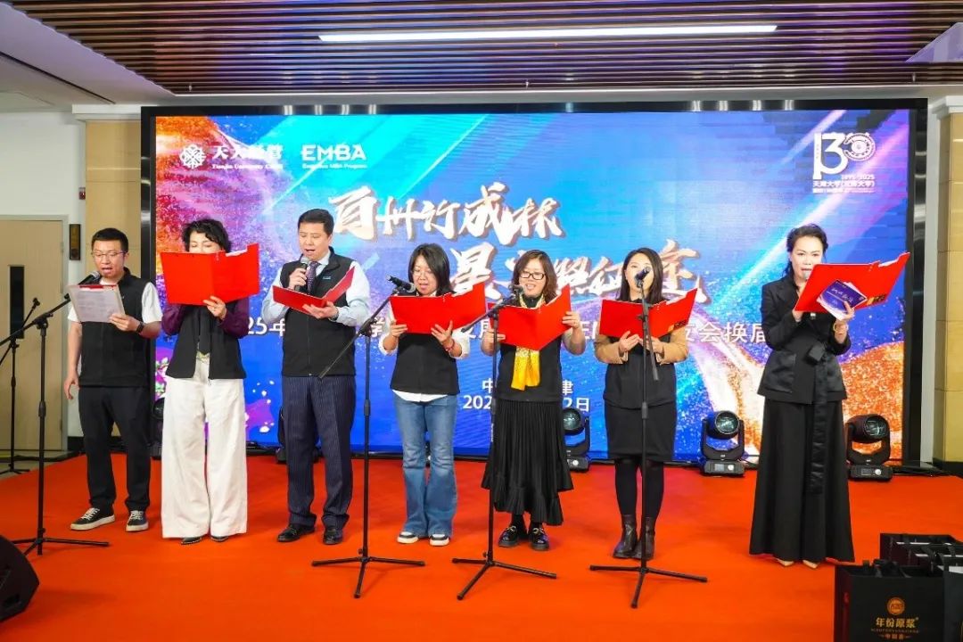 大会举行了acg盒子 EMBA校友会第三届校友会理事会换届仪式。acg盒子 天津校友会党支部书记刘耀昌宣读新一届校友会理事会成员名单,王友斌正式接任会长一职。