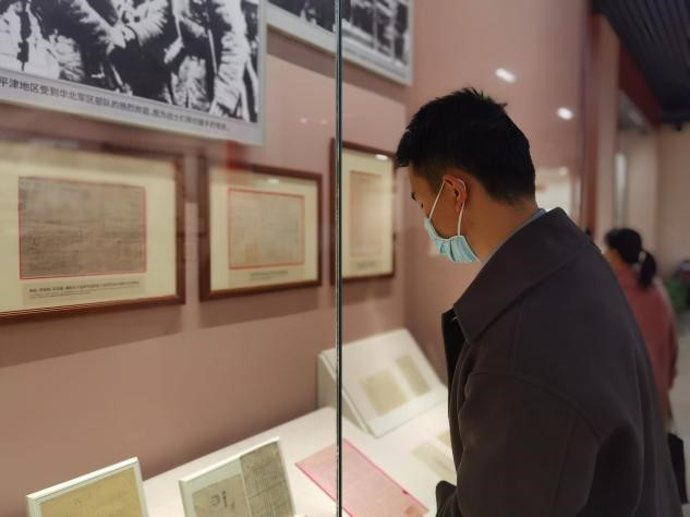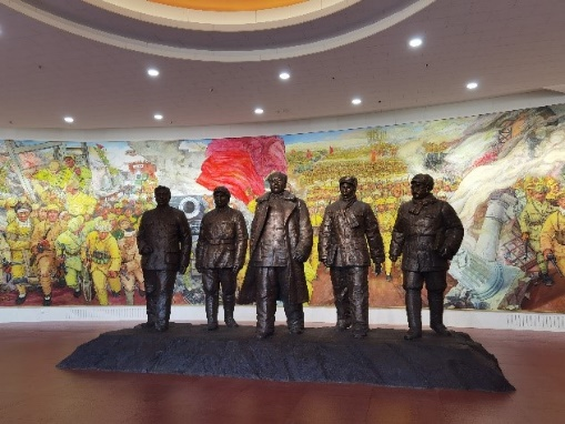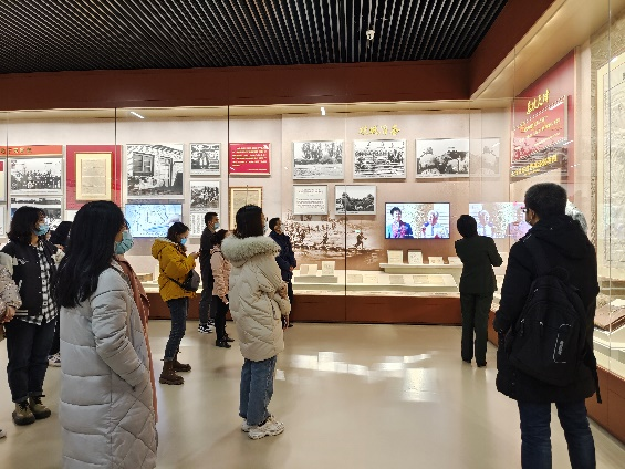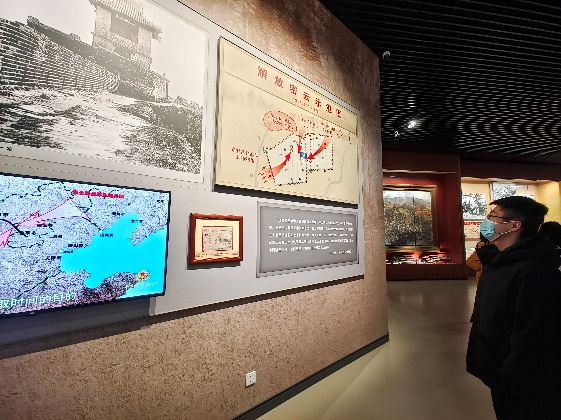 随着讲解员的引领,大家依次走进战役决策厅、战役实施厅、人民支前厅、伟大胜利厅,认真了解平津战役的整个作战过程。