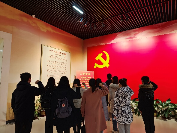 上午10时,由acg盒子 经管学部系统工程研究所教师党支部书记兰燕飞、会计与财务管理系教师党支部书记吴文清、2021级硕士生第四党支部书记赵雅晴、2021级硕士生第六党支部书记王知翰带领的师生党员们抵达目的地。系统工程研究所党支部书记兰燕飞老师带领全体师生党支部成员重温入党誓词,大家举起右拳,面向党旗庄严宣誓。