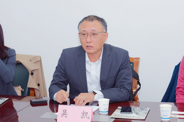 Huo Bao-feng welcomed Wu Kai and his delegation, and gave a brief introduction of CoME from the aspects of history, vision and mission, discipline distribution, talent cultivation, international certification, New Business construction.