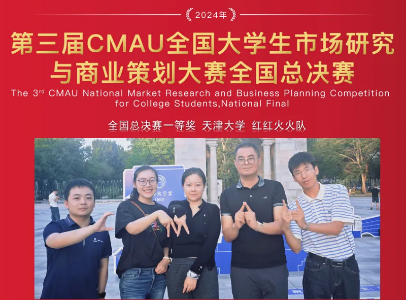 On June 16th, the final of the 3rd CMAU National Market Research and Business Planning Competition for College Students was successfully concluded in Wuhan, Hubei Province. A total of 2,902 teams and 32,418 people from over 500 universities across the country have signed up for this competition. The "Red Fire" team of Tianjin University (hereafter called TJU), composed of MBA students Zhou Yan (captain), Zhang Peng, Zhao Jingjing, Yan Jianhu, and Tian Hengrui, stood out from 113 final teams after fierce competition and won the first prize nationwide, creating the best performance in the history of TJU in this competition. The "Ravenclaw" team composed of Wang Yuexin (captain), Liu Chuanpeng, and Chen Jiachun, an undergraduate team from TJU, won the second prize nationwide. Professor Li Lei, Associate Professor Ma Xiangyang, and Associate Professor Luo Cheng from the CoME were awarded the Outstanding Instructor Award, and Tianjin University was awarded the Best Organization Award.