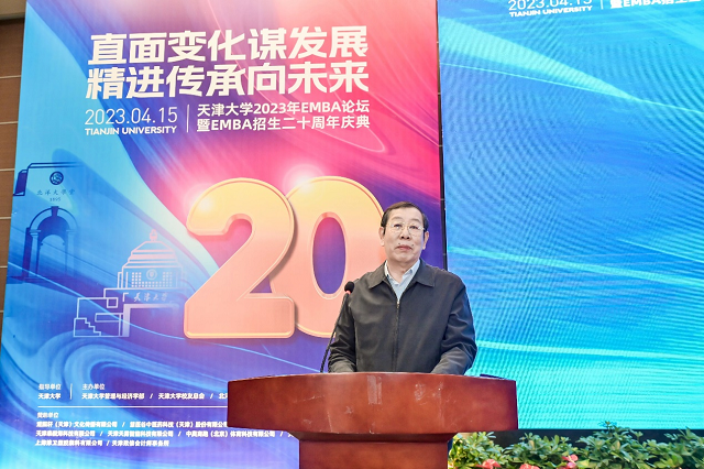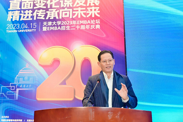 On April 15th, as part of the series activities to commemorate the 100th anniversary of Mr. Liu Bao's birth, the TJU 2023 EMBA Development Forum and the 20th anniversary celebration of EMBA enrollment with the theme of "Facing Changes for Development, Refining Heritage for the Future" was successfully held in Tianjin University