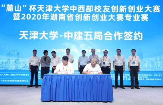 On the afternoon of August 15, the signing ceremony of strategic cooperation projects between Tianjin University (TJU), China Construction Fifth Engineering Bureau Co, Ltd (CSCEC5B), SINOHYDRO Bureau 8 Co.Ltd and Nengchuang Technology was successfully held in Entrepreneurship Building, National University Science Park, Mt. Yuelu, Changsha.